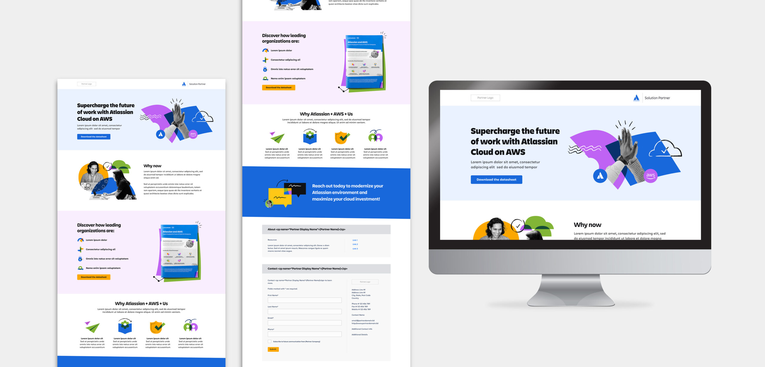 This campaign involved designing a co-branded landing page for Atlassian in partnership with AWS, following Atlassian’s strict brand guidelines and established visual identity. The design uses Atlassian’s humanistic shapes, playful layouts, and bold colour application, alongside black-and-white collage-style imagery for human elements to maintain consistency with the brand while keeping the page approachable and engaging.